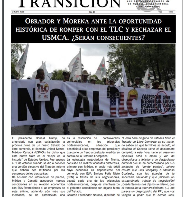 El 1 de julio, 32 millones de mexicanos votaron por AMLO dándole un mandato muy claro de romper con la “mafia del poder” y echar abajo las políticas económicas de las últimas décadas que han llevado al desastre nacional. El eje rector de dichas políticas ha sido el TLCAN que al tener el mismo nivel jurídico que la Constitución, ha sido la guía para la implementación del resto de las reformas, la perdida de las jubilaciones, la venta de las empresas públicas, la privatización de la educación, etc… Esto lo saben muy bien los legisladores del MORENA, cuyo coordinador en el Senado Martí Batres manifestó que en el análisis del proyecto “la preocupación tiene que ver con las leyes secundarias que México deberá crear”.