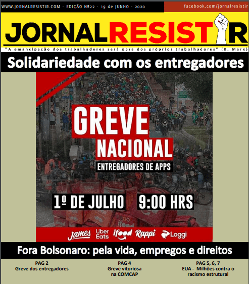 Los redactores del Periódico RESISTIR, llaman a que: “las Organizaciones sindicales y políticas de los trabajadores deben convocar a la solidaridad con la huelga y hacer del primero de julio una jornada de paros y protestas por el Fuera Bolsonaro, por la vida, trabajos y derechos”.