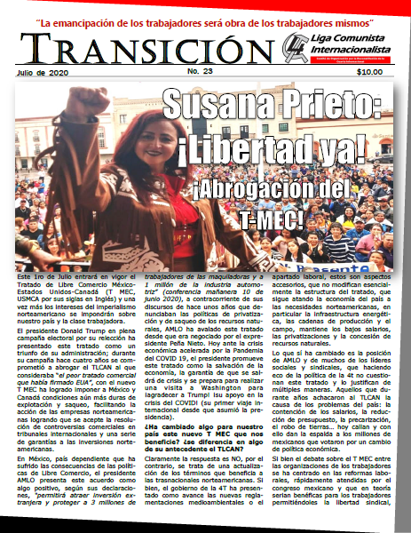 Como podrás leer más extensamente en este boletín, el gobierno de Tamaulipas, del empresario panista Francisco García Cabeza de Vaca, ordenó la aprehensión de Susana Prieto, con acusaciones falsas y un proceso judicial plagado de irregularidades. La detención, se da justo en el momento más grave de la pandemia, cuando miles de trabajadores denuncian las violaciones a sus derechos laborales y el riesgo a su salud, lucha en que la compañera es la cabeza más visible en varias ciudades, esta acción es un mensaje amenazador para toda la clase trabajadora del país, para las organizaciones sindicales, justo semanas antes de la entrada del T MEC, los empresarios y sus secuaces charros anuncian que no aceptaran ningún cambio positivo para la clase trabajadora.