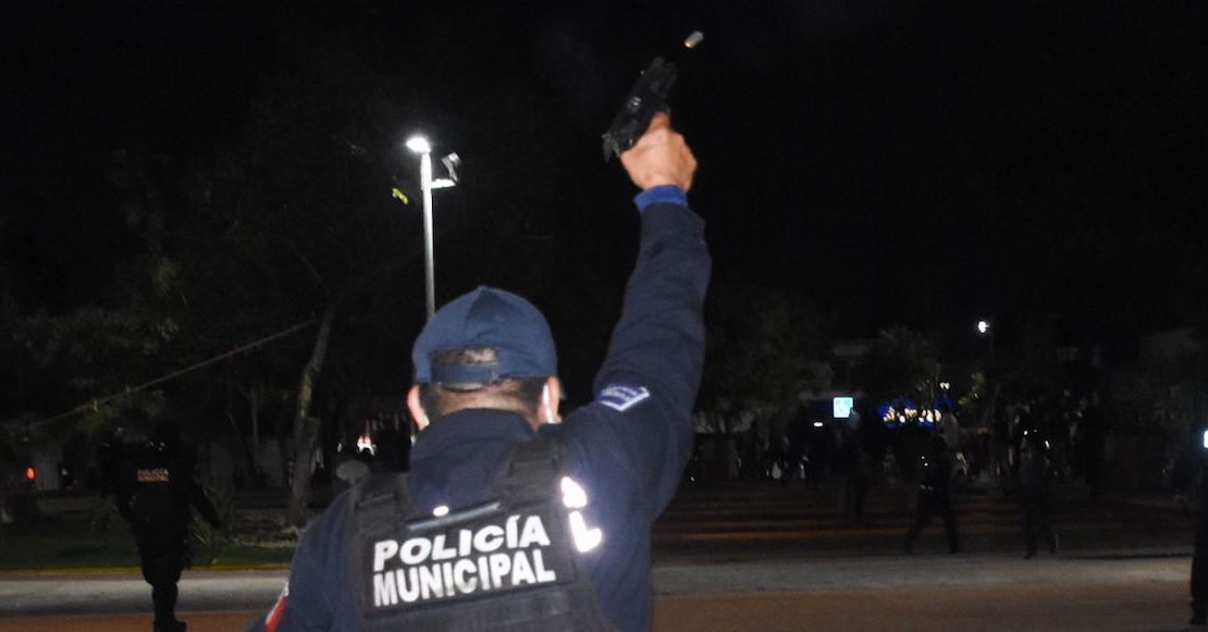 Efectivamente un grupo de manifestantes, mayormente mujeres, fueron dispersados del palacio municipal, con uso excesivo de la fuerza, la policía los golpeó, utilizó gases lacrimógenos y lo más grave fue que realizó disparos con municiones reales, como se puede ver en las imágenes que circulan.