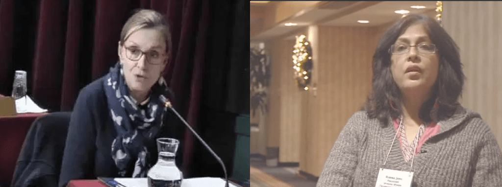 Sujata Mody, presidenta, Penn Thozhilalargal Sangam (Unión de mujeres trabajadoras), Chennai; Palani Bharathi, secretaria general del sindicato d trabajadoras del textil y de la confección, Chennai; Sabina Martins, militante femenina, Goa; Juliet Theresita, militante femenina en el sector informal Tuticorin (Tamil Nadu)