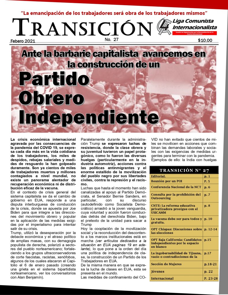 Este 15 de febrero salió la nueva edición de nuestro boletín Transición, de la Liga Comunista Internacionalista. Te invitamos a adquirirlo. a continuación reproducimos la editorial.