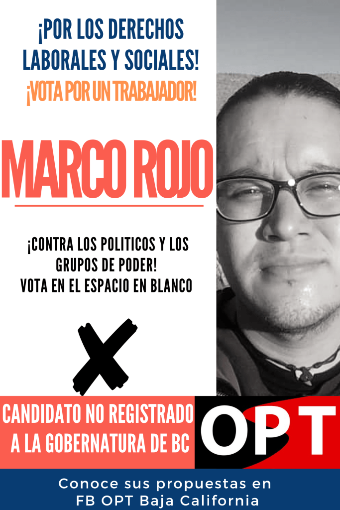 La Campaña #MarcoRojo #votarebelde fue la culminación de una serie de discusiones con sectores movilizados en BC y de un intento previo de registro ante el INE de candidaturas independientes que falló ante la imposibilidad de cumplir con los requisitos impuestos por las instituciones que sólo candidatos apoyados con dinero de partidos, empresarios, iglesias y/o narcotraficantes pueden cubrir. Durante mucho tiempo, las y los trabajadores han aceptado que sólo los que cuentan con recursos pueden aspirar a un cargo donde se agiten las demandas mas sentidas de la clase trabajadora.