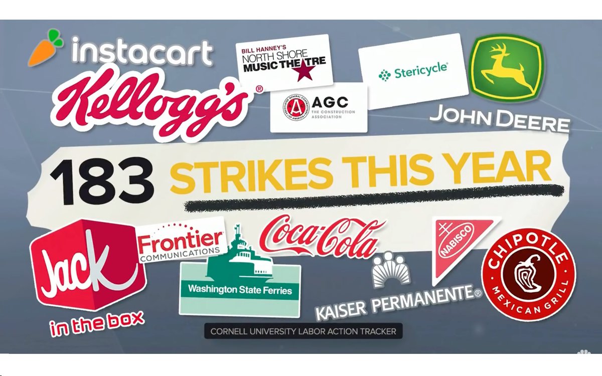 Los trabajadores están actualmente en huelga contra 46 patrones. Diez mil trabajadores acaban de hacer huelga en la fábrica de maquinaria agrícola John Deere. En 2021 se han registrado casi 550 manifestaciones obreras, según los investigadores de la Universidad de Cornell, en Nueva York. Estas acciones se están llevando a cabo en todo el país en una amplia gama de industrias y profesiones.