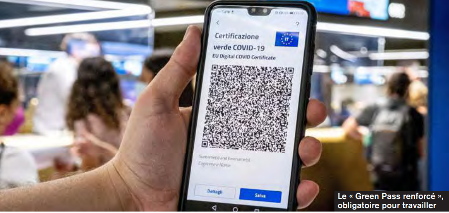 En diciembre de 2021, el gobierno introdujo un Pase Verde «reforzado». Obligatorio a mediados de diciembre para el personal escolar y hospitalario, extendido a otros sectores profesionales, solo se puede obtener mediante vacunación (y además mediante pruebas negativas). A partir del 15 de febrero será obligatorio en todos los sectores profesionales. Además, el gobierno ha decretado la vacunación obligatoria para todos los ciudadanos mayores de 50 años, condición tanto para el acceso al trabajo como a los lugares públicos.