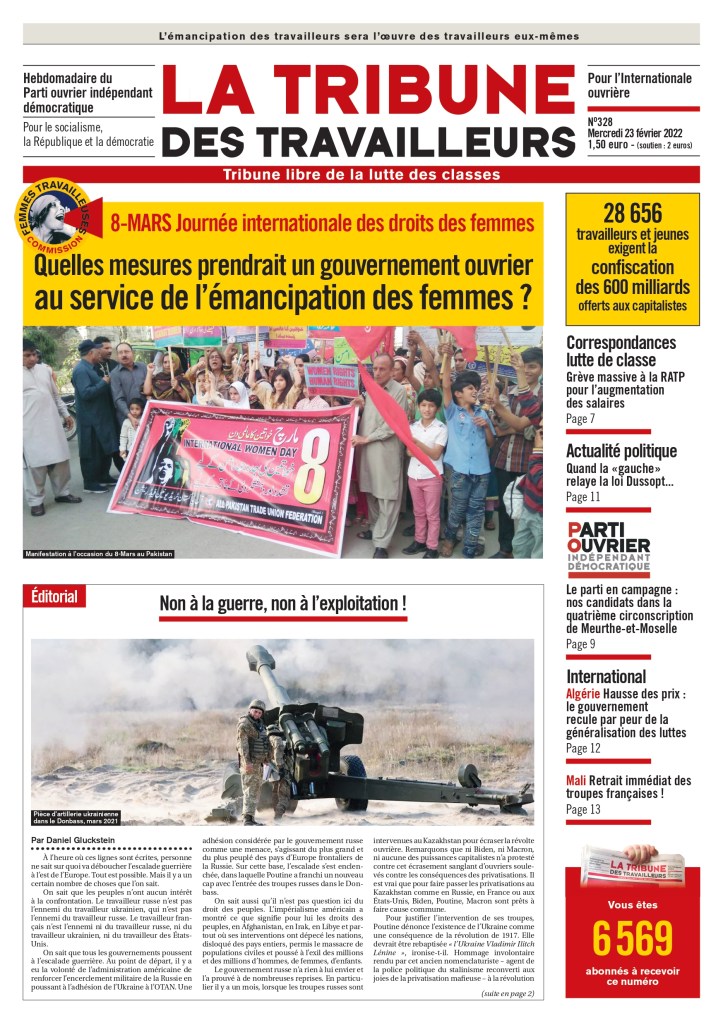 Presentamos la editorial de La Tribune des travailleurs 328 (23 de Febrero, 2022)