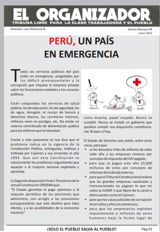 Editorial del periódico El Organizador, de los camaradas peruanos del CORCI, #48 Junio de 2022