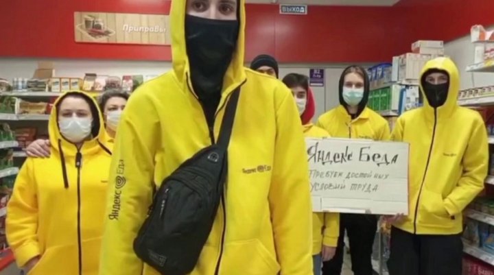 El 20 de diciembre, los encargados de la repartición de alimentos de Moscú y de San Petersburgo, con su sindicato Kourier, se fueron a la huelga. Hace algunos meses, las plataformas de entrega que los contratan, Yandexy y Mail.ru/Delivery Club se fusionaron, dejando a Yandex en situación de monopolio controlando el 77% del mercado. Yandex había prometido a los repartidores de la exDelivery Club que conservarían su remuneración mínima, pero esta promesa fue desechada.