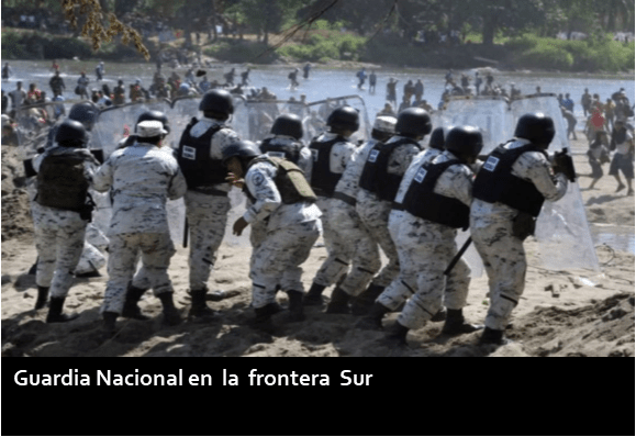 La GN ha sido la encargada de reprimir las caravanas migrantes en el sur del país y de resguardar la frontera del norte, convirtiéndose en el verdadero “muro fronterizo”. Además de aplicar los acuerdos migratorios, la GN es la encargada del patrullaje en diversas ciudades, la intervención de las aduanas, puertos y aeropuertos y hasta de la seguridad del Metro de la CDMX.