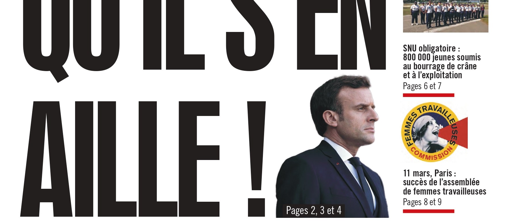 Macron aguanta porque Biden y la OTAN lo necesitan para alargar aún más la guerra (413.000 millones de euros para la próxima ley de financiación militar). Aguanta porque la jerarquía militar lo necesita para inscribir a los jóvenes en el servicio [militar] nacional universal obligatorio (SNU). Aguanta porque la Quinta República es el régimen del golpe de Estado permanente que permite aprobar leyes sin el voto de ninguna asamblea legislativa. Y cuando todo esto no es suficiente, Macron desata la represión más brutal contra los manifestantes que protestan contra su toma del poder.