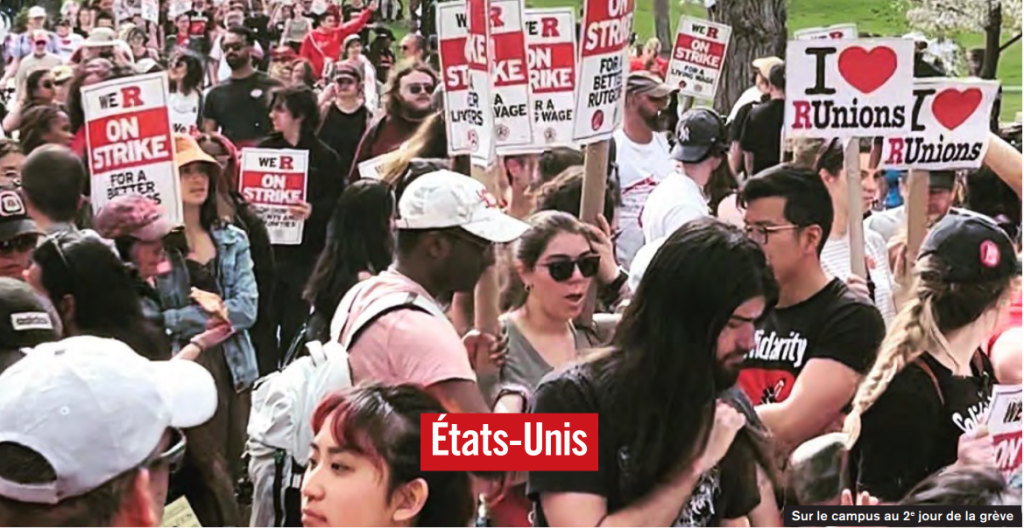 Esta huelga se inscribe en la ola histórica de huelgas del sector educativo superior, como las que se desarrollan ahora en los Estados de Illinois y de Michigan, después de las de California. La profesora citada anteriormente resume el sentimiento general: “La única manera de ponerle un término a la desigualdad en los salarios y de mejorar nuestras condiciones de trabajo en este país, es la de movilizar nuestra fuerza, dejar de trabajar -trabajo sin el cual Rutgers no puede funcionar- y permanecer unidos hasta que Rutgers nos reconozca la convención colectiva que merecemos”