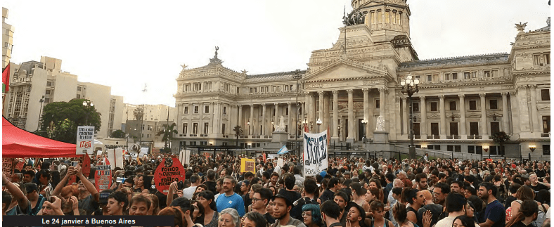 Porque el 24 de enero desde las altas llanuras de los Andes en el norte hasta la Patagonia al sur, los trabajadores, llevando consigo a todas las organizaciones obreras, populares y democráticas se les enfrentaron, unidos por cientos de miles, por el retiro de los dos proyectos anti-obreros. Eso, a pesar de todas las disposiciones represivas de Milei contra el derecho de huelga y el de manifestar. Por supuesto, Milei no ha renunciado ni a la ley Ómnibus ni a las otras. Sus parlamentarios acaban de enviar un proyecto de ley que pretende prohibir el derecho a la interrupción voluntaria del embarazo.