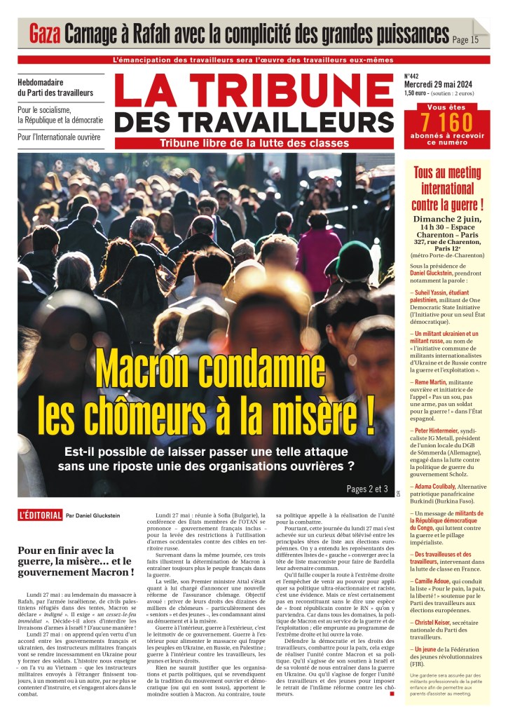 Editorial del # 442 de LA TRIBUNE DES TRAVAILLEURS (15 de mayo de 202) Semanario del Partido de Trabajadores francés