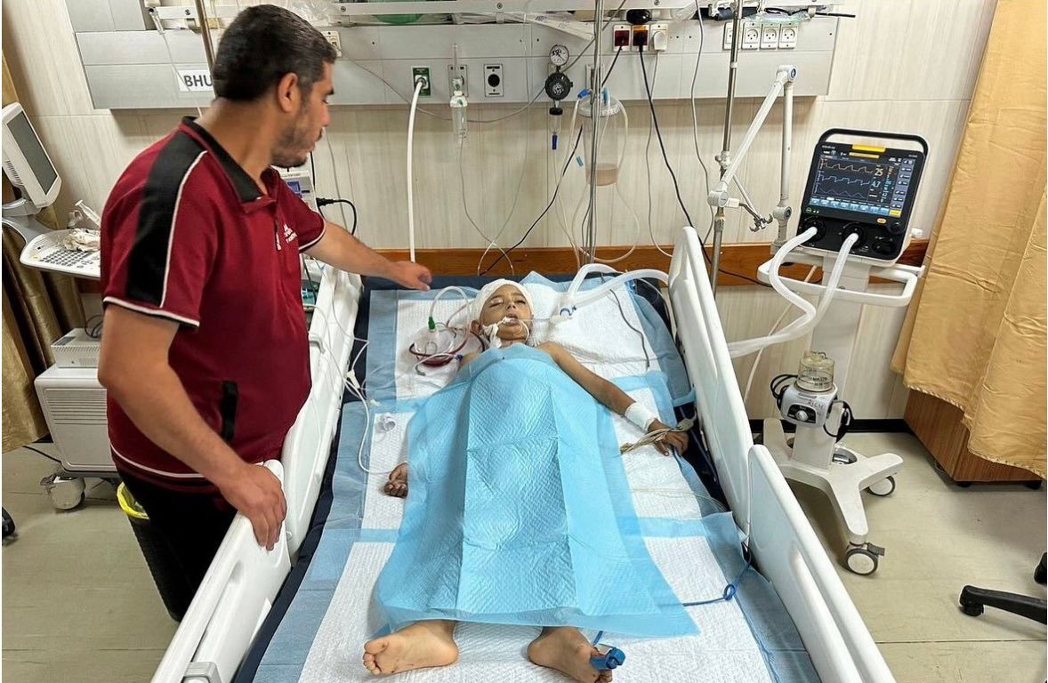Youssef, un niño de 11 años, se encuentra sentado en el hospital Nasser de Khan Younis donde fue enviado para recibir atención médica. Su rostro está ensangrentado y sus ojos inflados color rojo después de que fue extraído de los escombros de su casa en Nuseirat. Dice no saber cómo escapó a la muerte. (…) “Me quedé bajo los escombros durante horas. No pensé un solo instante que saldría vivo. Bajo los escombros, era la muerte. Pienso que no olvidaré ni me restableceré de esos momentos”.