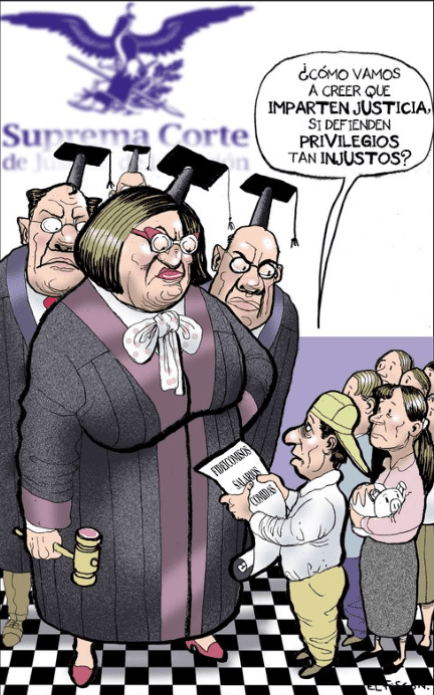 Hay que agregar que siendo un poder al mismo nivel que el ejecutivo y el legislativo se han asignado para sí mismos grandes privilegios, entre los que se incluyen los salarios más altos para un funcionario público $ 827,792 mensuales (datos de El Economista 19 de octubre de 2023) (2), además de fideicomisos, régimen de jubilación propio, viáticos, pago de residencia, uso de automóvil, telefonía personal doméstico y de servicios a cargo del erario público (3).