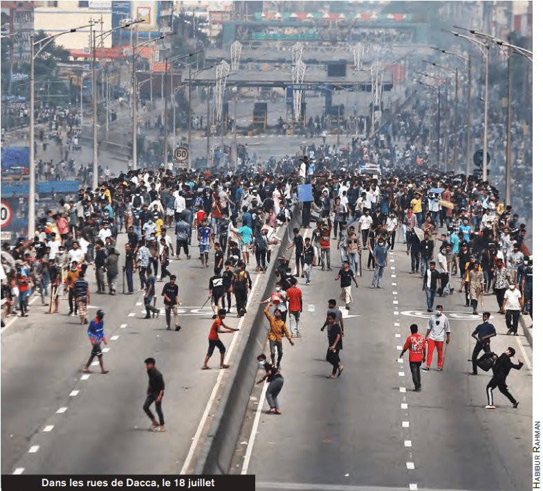 Todas las informaciones que nos llegan de Bangladesh lo confirman: la movilización de estudiantes, durante las últimas semanas, se ha unido con lo que se puede llamar el inicio de la revolución obrera. Esto se expresa con fuerza, en particular en la jornada del 4 de agosto durante la cual cientos de miles de trabajadores convergieron en la capital. Es precisamente en relación con esta apreciación que el ejército organizó la huida en helicóptero de la Primer ministra Sheikh Hassina y de su familia, refugiados en su palacio. A partir de entonces, precipitadamente, todas las fuerzas institucionales en Bangladesh como en la región y a escala internacional buscan encontrar una solución para restablecer un régimen que asegure la “estabilidad” con el fin de pueda ser reiniciada la explotación de los trabajadores del textil.