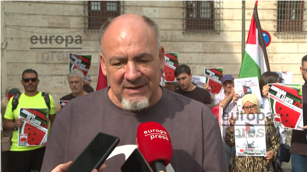 “Organizamos esta acción”, explicó Arnaiz, “para responder a las demandas de los trabajadores palestinos… El mensaje que queremos enviar al gobierno español y al mundo”, señaló, es “cortar todas las relaciones con Israel”, lo que significa específicamente cortar todas las relaciones diplomáticas, comerciales y militares.