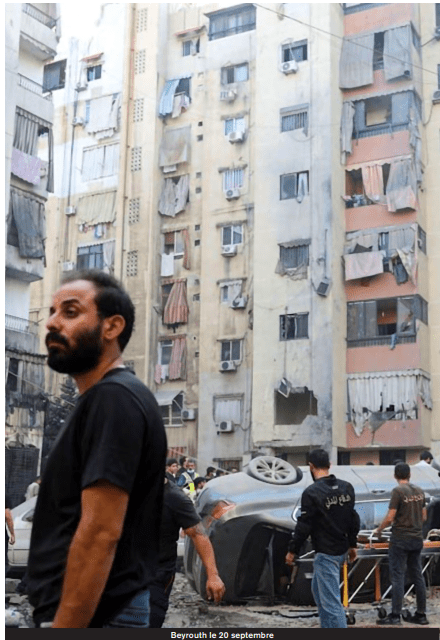 El 17, y luego el 18 de septiembre, los servicios israelitas hicieron estallar explosivos disimulados en los bíperes y en los walkies-talkies utilizados por militantes de Hezbollah, provocando una matanza: al menos doce muertos, dos niños incluidos, y 2,323 heridos el 17 y al menos veinticinco muertos y 608 heridos el 18. El 19, Israel asesina a un dirigente de Hezbollah.
