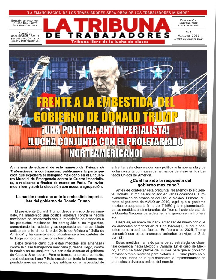 Ya esta en circulación Tribuna de Trabajadores #4 (Marzo de 2024), periódico editado por la Liga Comunista Internacionalista – CORCI, a continuación te compartimos su articulo editorial. Si deseas adquirir el boletín completo enviános mensaje al mail corcimexico@gmail.com