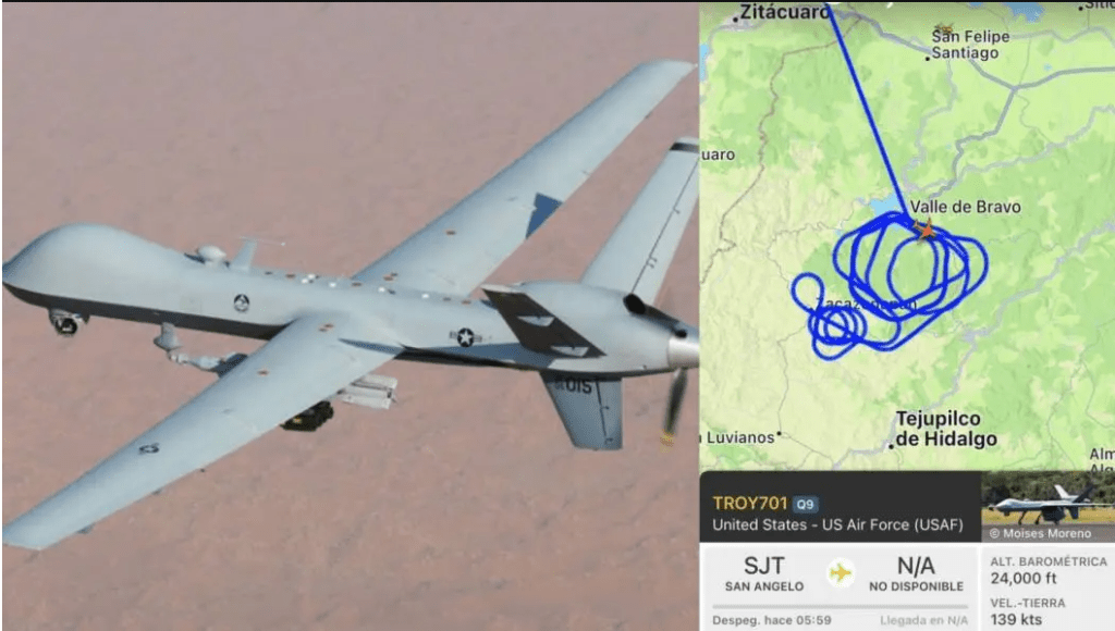 Las coincidencias no son casualidad. El dron sobrevoló el Estado de México apenas un día después de la extradición de 26 miembros del crimen organizado a EE. UU., y días después de que Trump firmara una orden ejecutiva que autoriza el uso de las fuerzas armadas contra cárteles fuera de su territorio, al tiempo que desplegaba barcos de combate y cientos de tropas en mares venezolanos, amenazando con intervenir en aquel país con el mismo argumento de la “lucha contra el narcotráfico”.