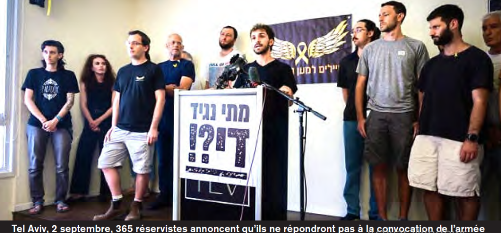 En cuanto a la movilización de reservistas, esta “se ha topado con dificultades. Muy pocos reservistas estaban realmente dispuestos a presentarse” (Times of Israel, 2 de septiembre). Un puñado de ellos, burlando la censura militar, declaró públicamente: “Cada soldado que ustedes ven aquí es un cadáver andante. Ahora mismo, mi cuerpo está con ustedes. Les hablo, pero en realidad, mi espíritu está en Gaza. Me acuesto pensando en Gaza. Me levanto pensando en Gaza. Vivo con Gaza.”