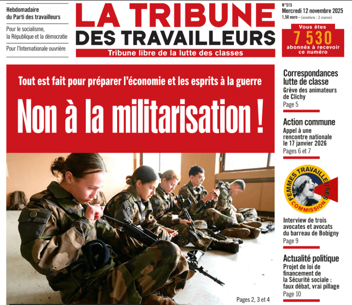 Editorial de LA TRIBUNE DES TRAVAILLEURS #515 12 de noviembre de 2025