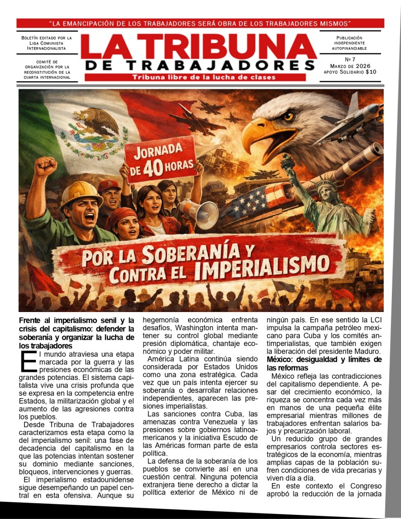 Desde el pasado 13 de marzo esta en circulación, el número #7 de la Tribuna de Trabajadores, prensa partidaria de la LCI- CORCI México. a continuación reproducimos su editorial.