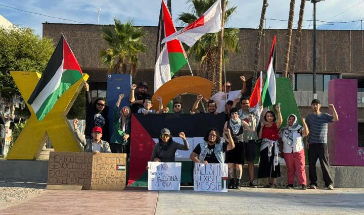 El pasado 8 de agosto, en el marco de la Jornada Internacional contra la Guerra Imperialista y la campaña #AislarAlEstadoDeIsrael, militantes de la Liga Comunista Internacionalista y el Comité Mexicali en Solidaridad con la Causa Palestina intentamos entregar las primeras 500 firmas exigiendo a Claudia Sheinbaum la ruptura de relaciones con Israel.